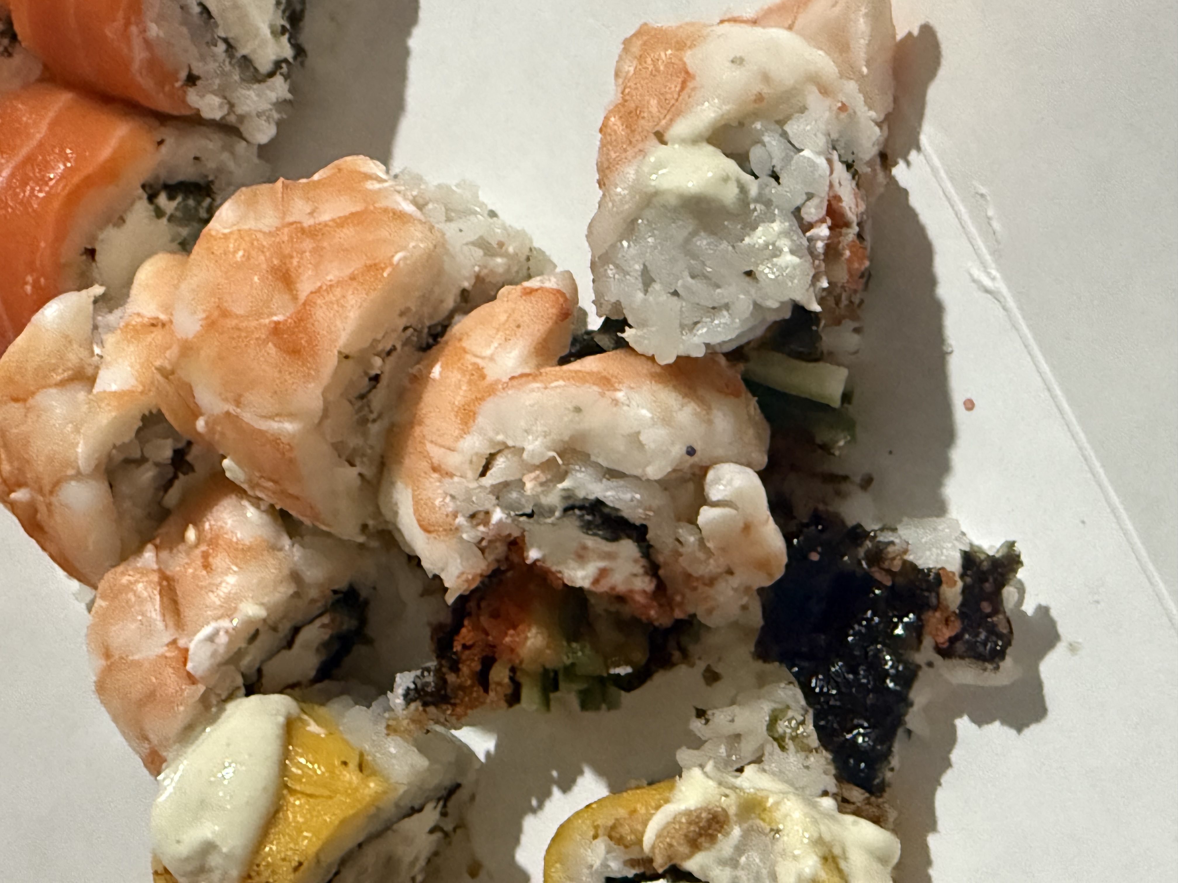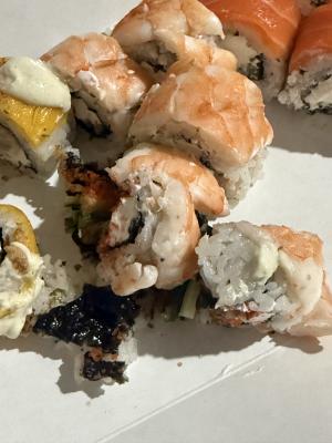 Заказывали в пятницу на самовывоз сет «Камикадзе». Приготовили к нужному времени и на этом плюсы закончились. Скрутка ужасная, с окунем разваливались все. Кроме этого, видимо в награду, попалась косточка! Повторять желания нет