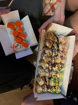Суши ерунда полная! Раньше заказывали только здесь… вкус отвратительный… один вид суши из сета по вкусу напоминает муку..
