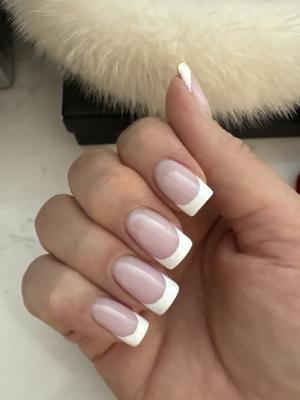 - коррекция ногтей + долговременное покрытие френч:
