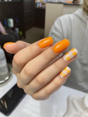 - наращивание ногтей + долговременное однотонное покрытие: