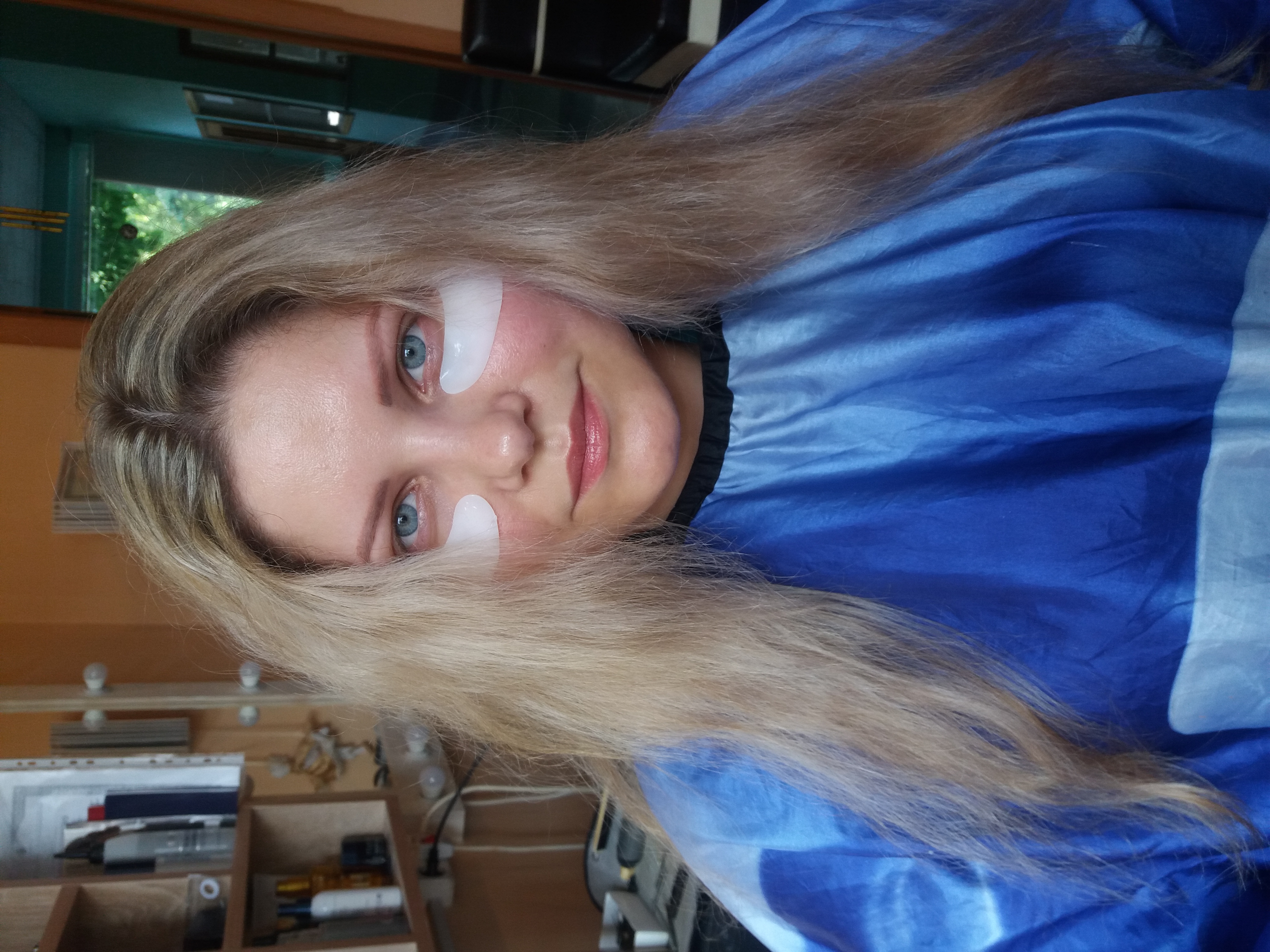 накрасить ресницы, и наклеили пару пучков ресниц. Когда макияж был готов,