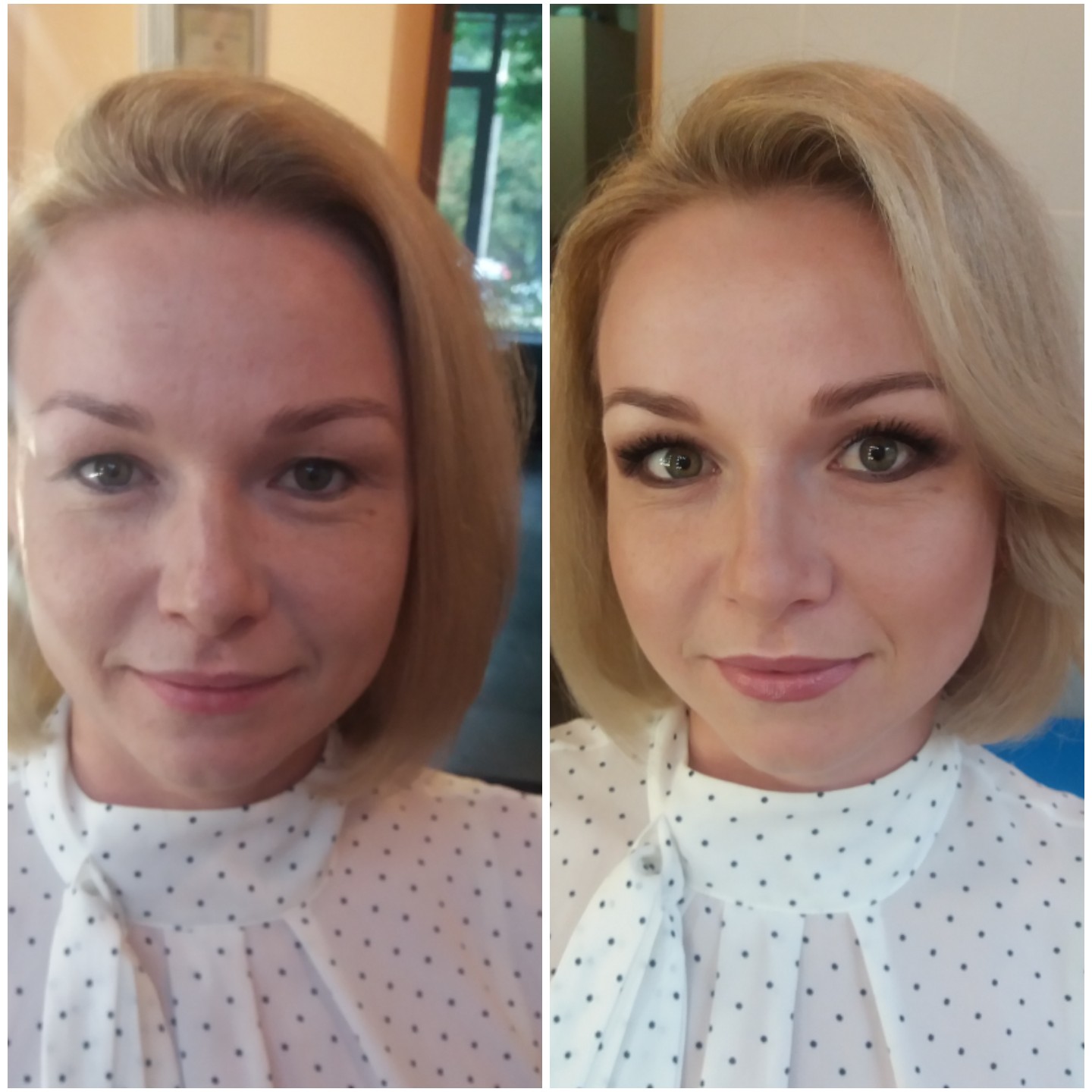 Макияж до и после.