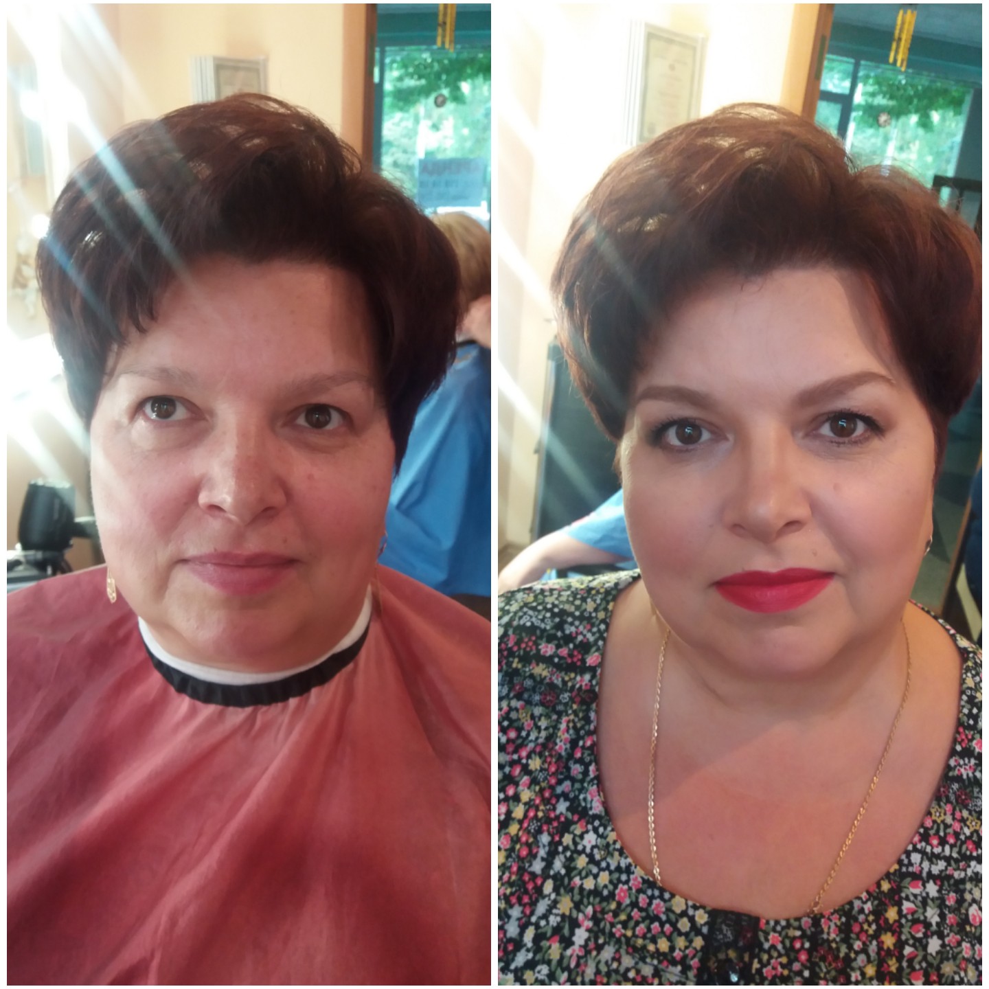 Причёска и макияж.до и после.