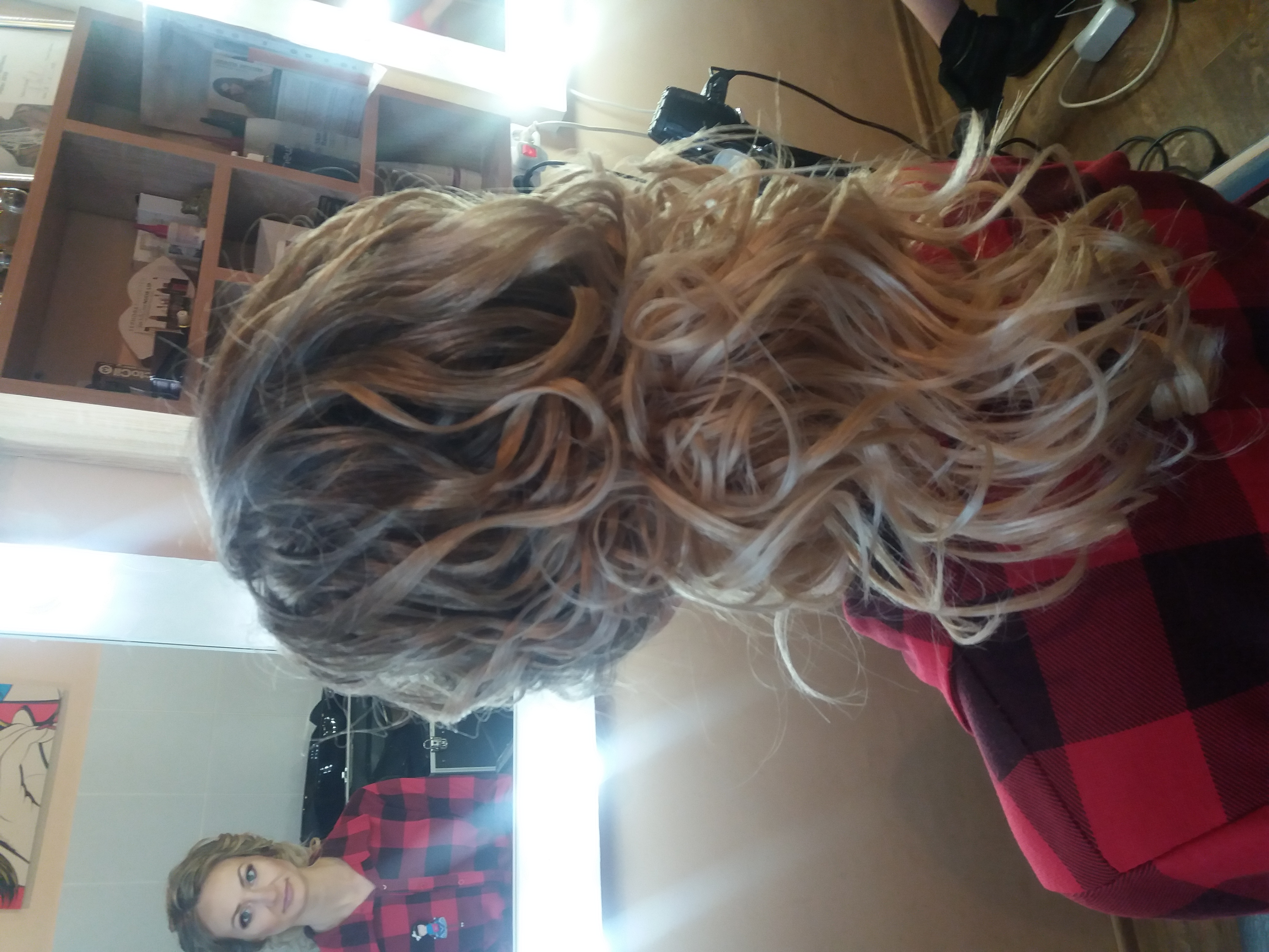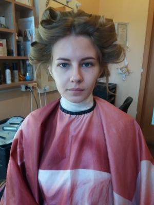 оба мастера заняты. Поэтому одной пришлось переключиться на клиентов. Мои волосы