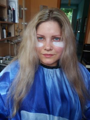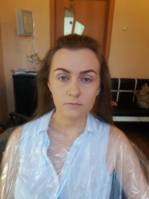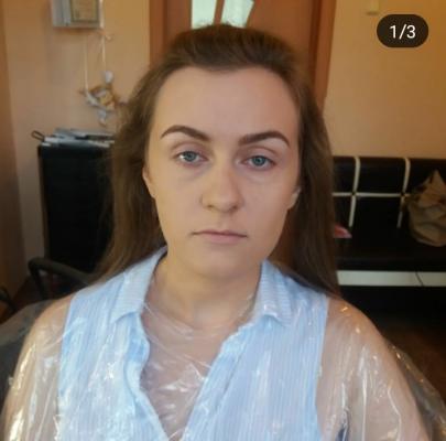 то получились очень темные брови, темные глаза, которые потом пришлось самой