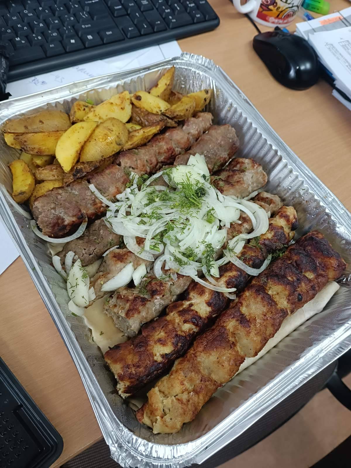 Доставка быстрая. Шашлык горячий. Шашлык вкууусный. Но вот лук ... Уже писал,правда давно, лук можно замариновать и будет бомба. 1 звезду снял только из-за лука