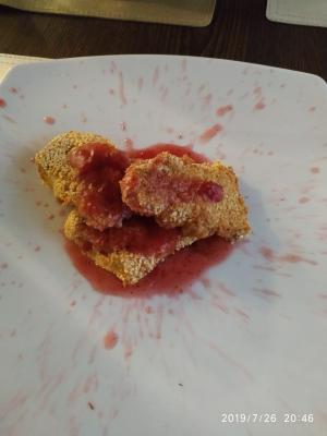 - наггетсы куриные с картофелем по-деревенски и сливочно-чесночным соусом (200 г/150 г/50 г)