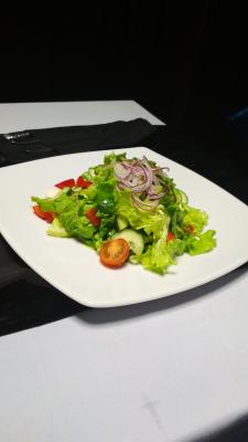 - салат "Греческий" (220 г): салат айсберг, сыр фета, томат черри,огурец свежий, перец болгарский, соус песто, оливки