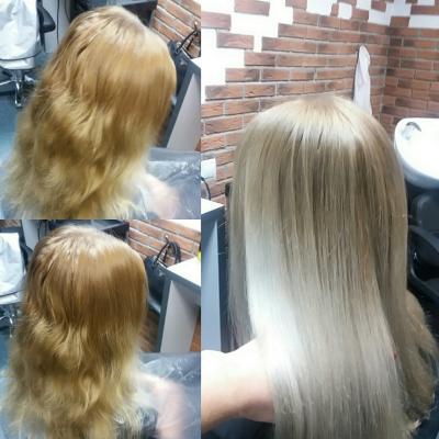 - тонирование волос + драгоценный уход с жидким золотом + укладка по форме (без учета материалов):
