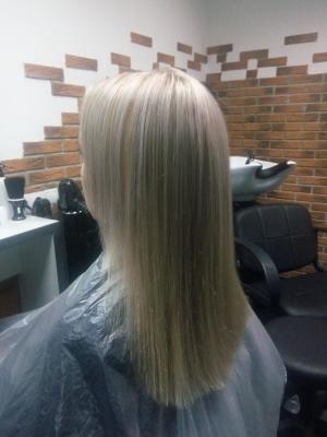 Мелирование волос (классическое) + драгоценный уход с жидким золотом + укладка по форме: