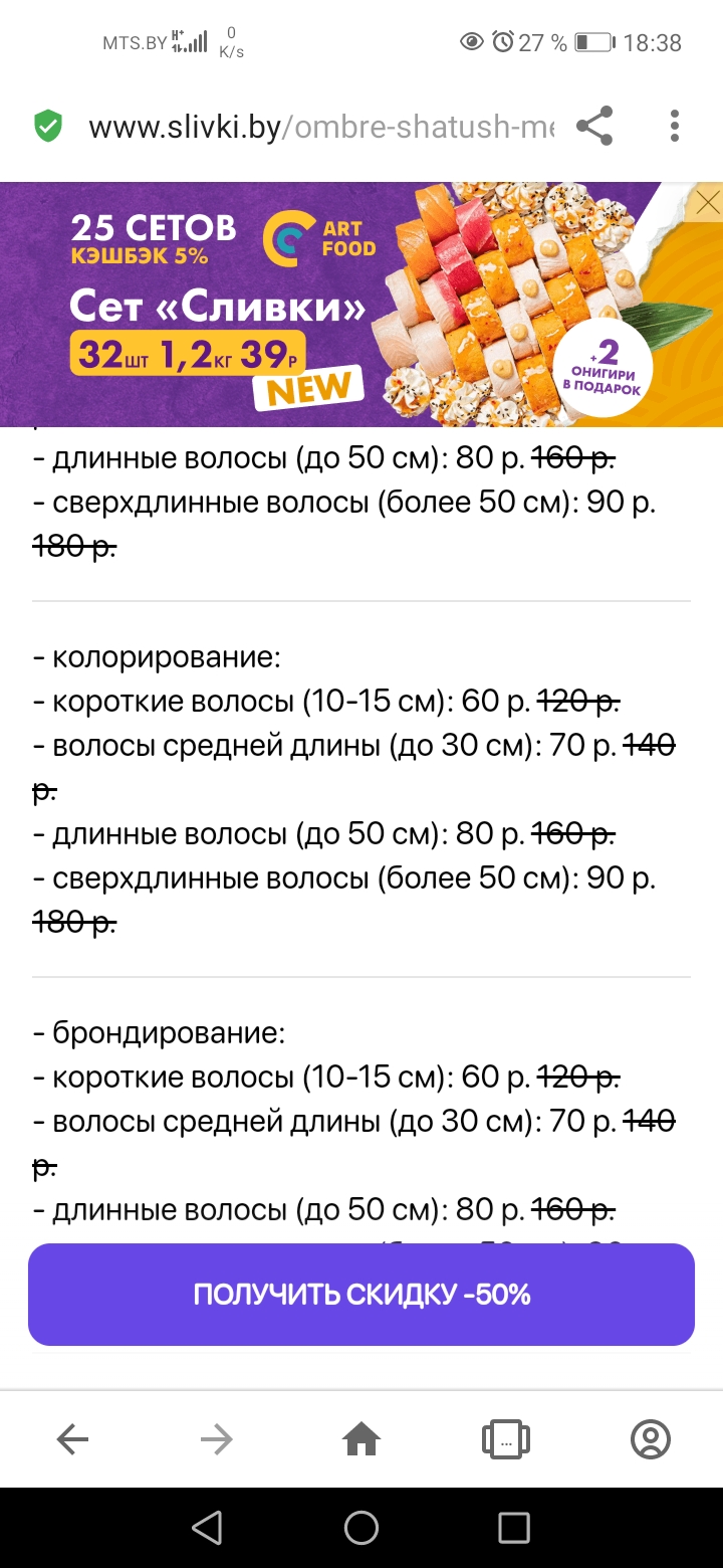 - сверхдлинные волосы (от 35 см): 70 р. 140 р.