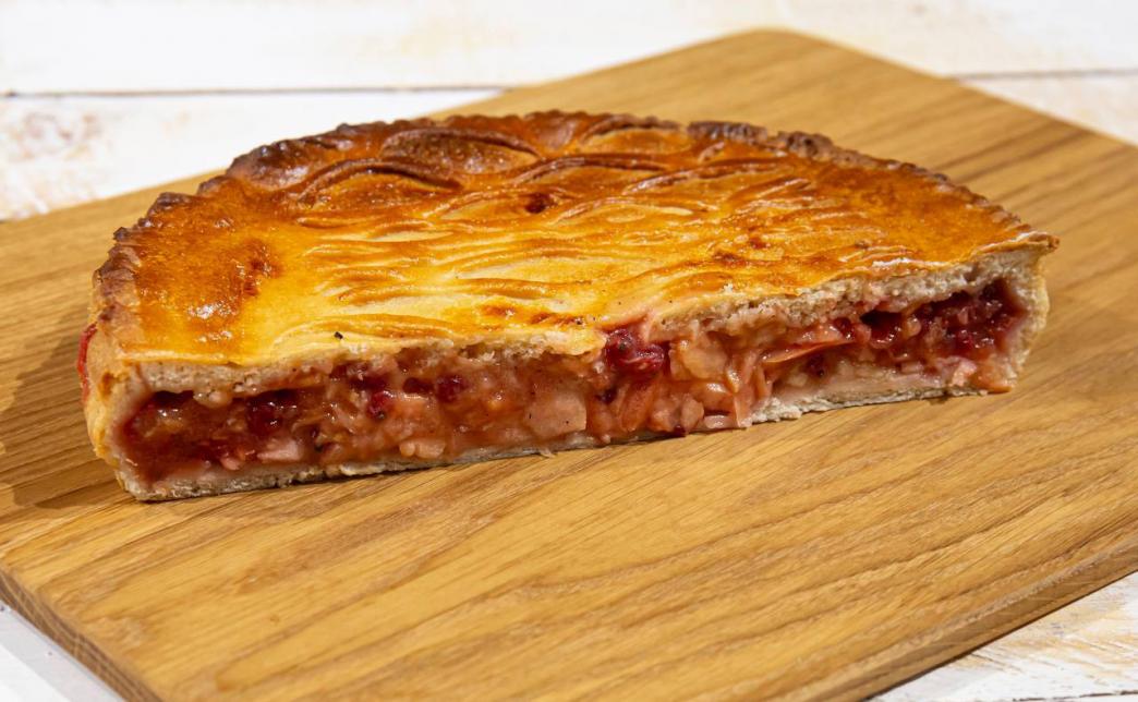 - пирог "С ветчиной, картофелем и соленым огурцом" (1200 г): дрожжевое тесто, ветчина, бекон, картофель, соленый огурец, морковь, лук, черный перец, соль
