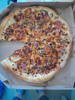 - Стоимость пицц идентична при заказе в зале и на доставку.