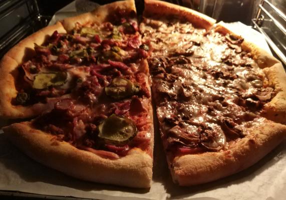 - Стоимость пицц идентична при заказе в зале и на доставку.