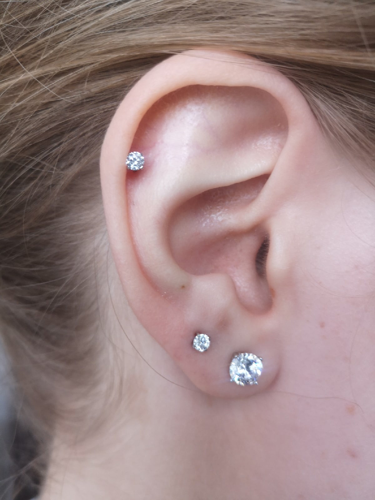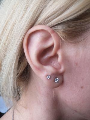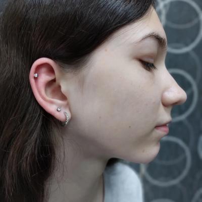 Застежка серьги-иглы закрывается так, что полностью исключается "зажим" мочки уха. Рана получается колотой, а разрывы исключены. Это означает, что процесс заживления происходит без проблем.