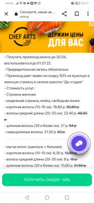 - Промокод дает право на скидку 50% на мужскую и женскую стрижку в салоне красоты "Да-студия"