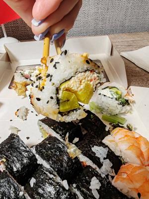 - На 1 суши-сет прилагается не более 4 комплектов палочек