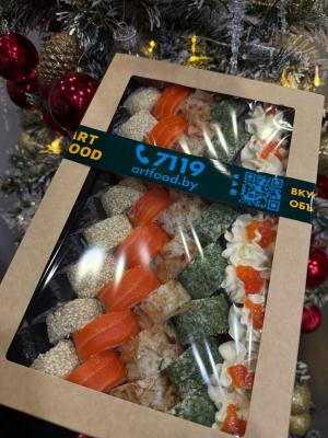 - Промокод дает право на скидку до 60% на суши-сеты от "ART FOOD"