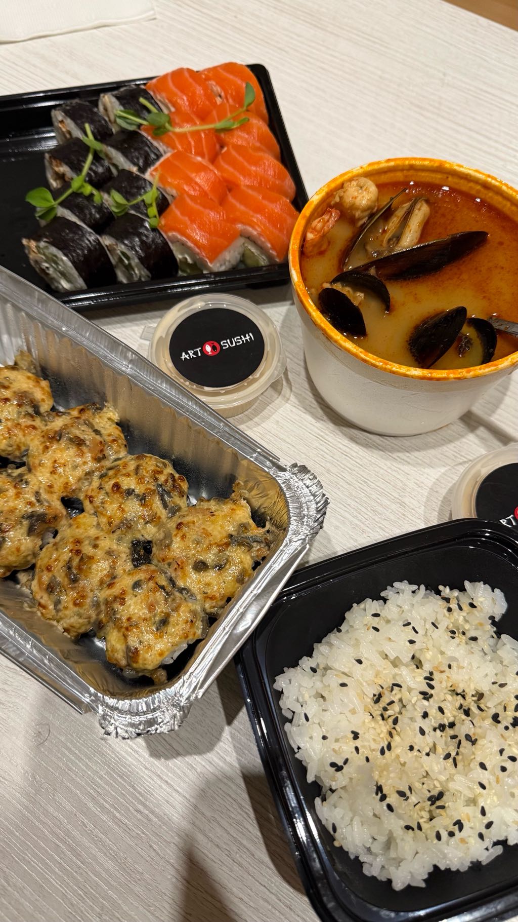 Сегодня заказали том ям и роллы )
