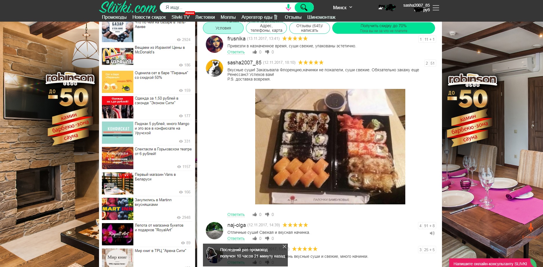 Отзывы пользователя к этой акции