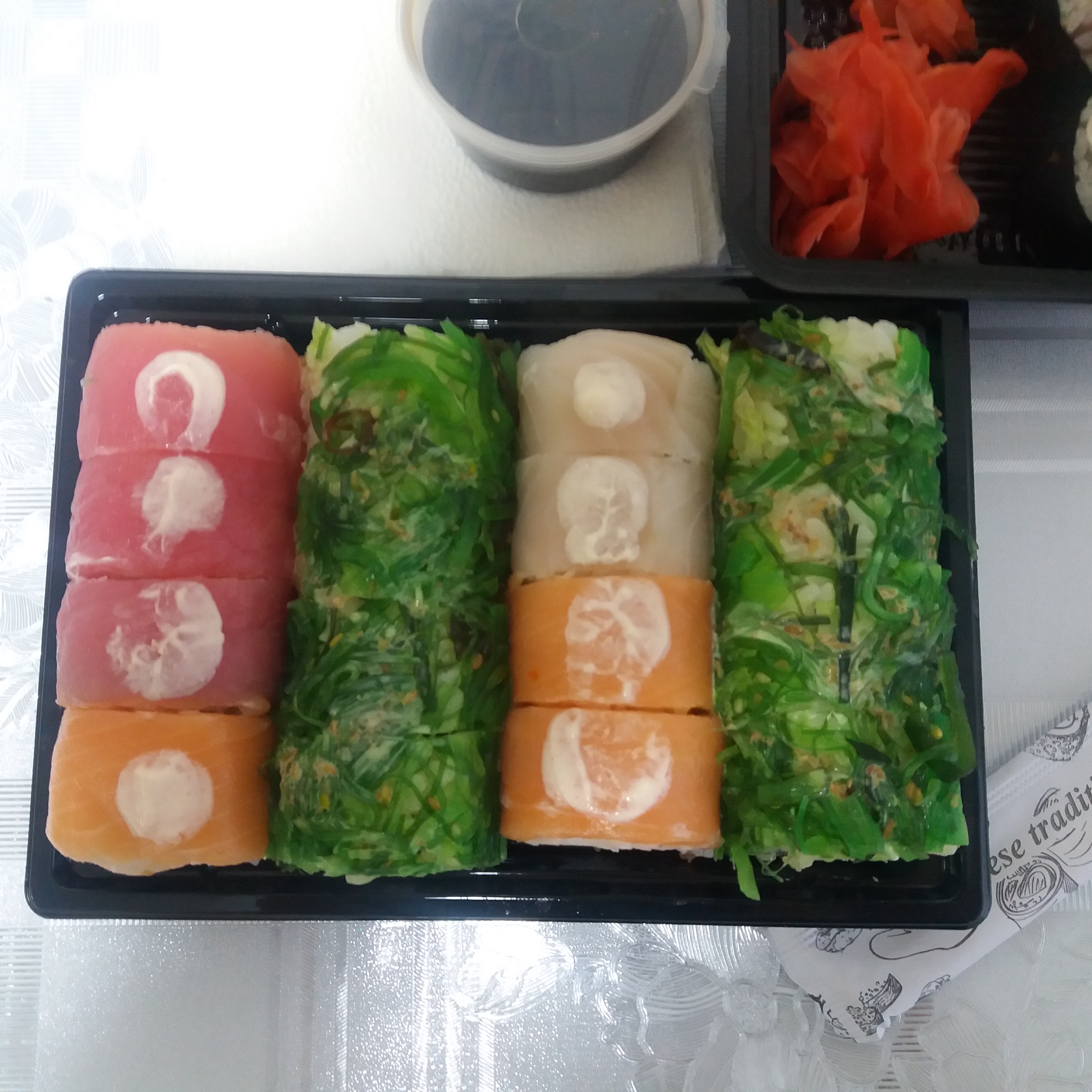 Заказывали вчера сет "радуга". Очень вкусный! Свежий! Аппетитный! и разнообразный! Рекомендую.
