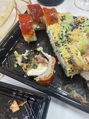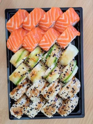 - Промокод дает право на скидку до 59% на суши-сеты от "Юджын Крабс"