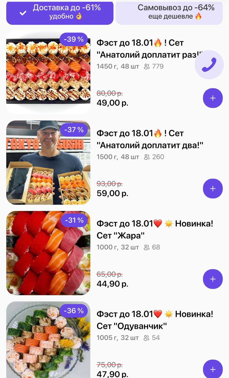 🔥Фэст по 18.01! Промокод дает право на скидку до 64% на суши-сеты от "TOKYO SUSHI"