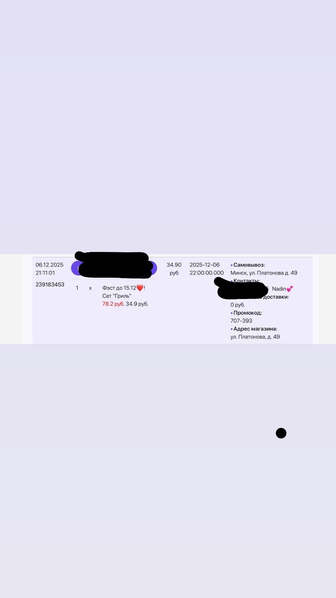 - Для отмены заказа (при необходимости) обратитесь по номеру + 375 33 323 66 99, не позднее чем за 20 минут до выбранного времени на доставку/самовывоз