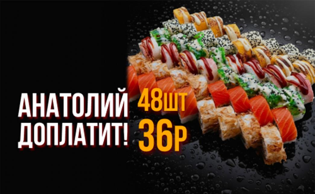 🔥 Фэст! Анатолий доплатит! Промокод дает право на скидку до 53% на сет "Анатолий доплатит!" от "THE СУШИ"
