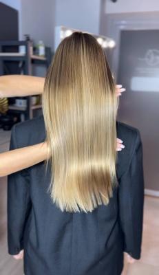- кератиновое выпрямление/горячий ботокс: