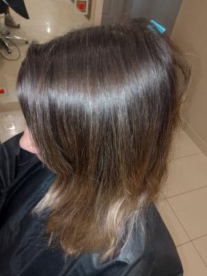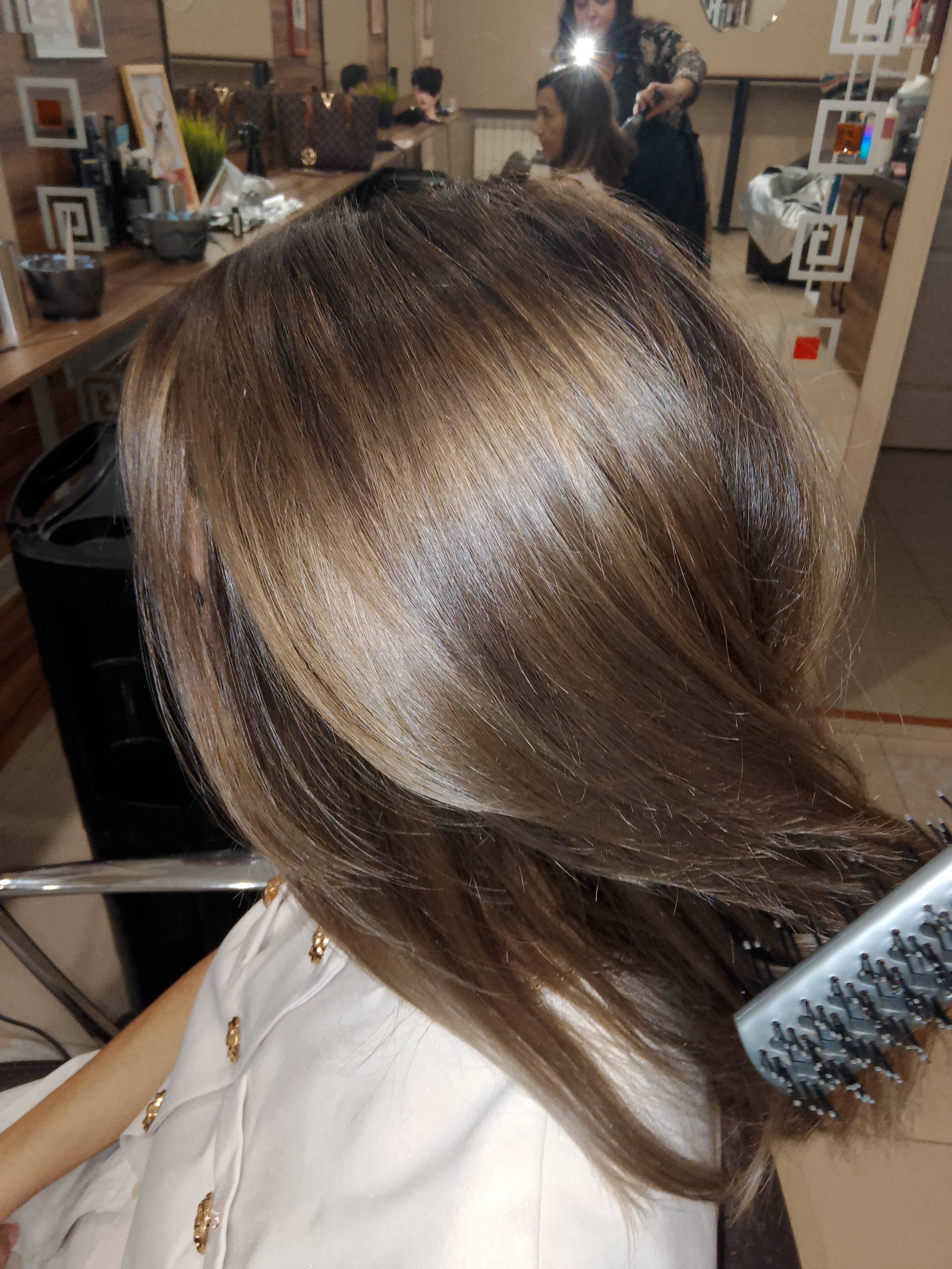 - сложное окрашивание волос (осветление в технике шатуш, омбре, балаяж, мелирование + тонирование + стрижка + маска липидная, с учетом красителя):