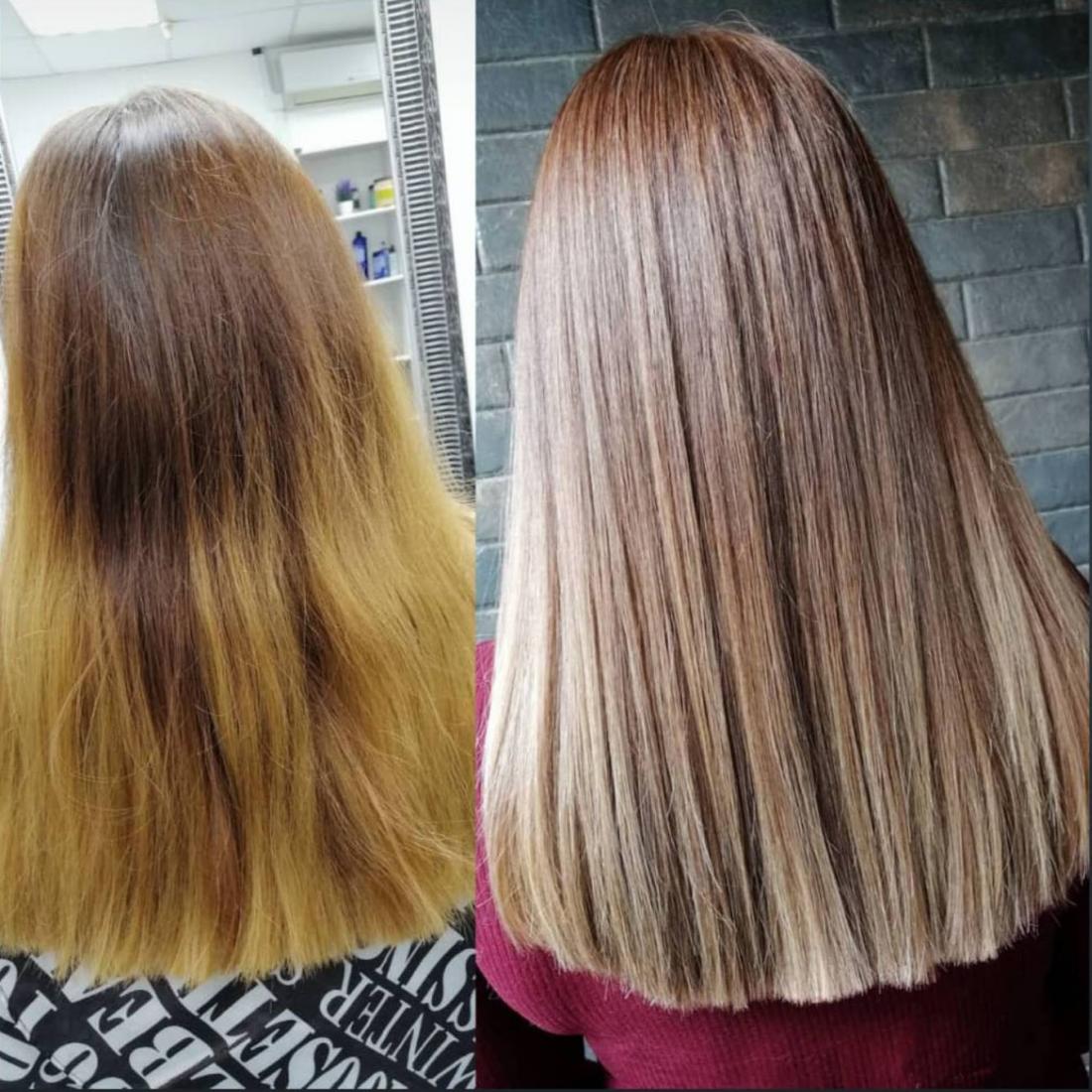 - комплекс №5: мелирование волос + интенсивное увлажнение от "Inebrya" + сушка по форме: